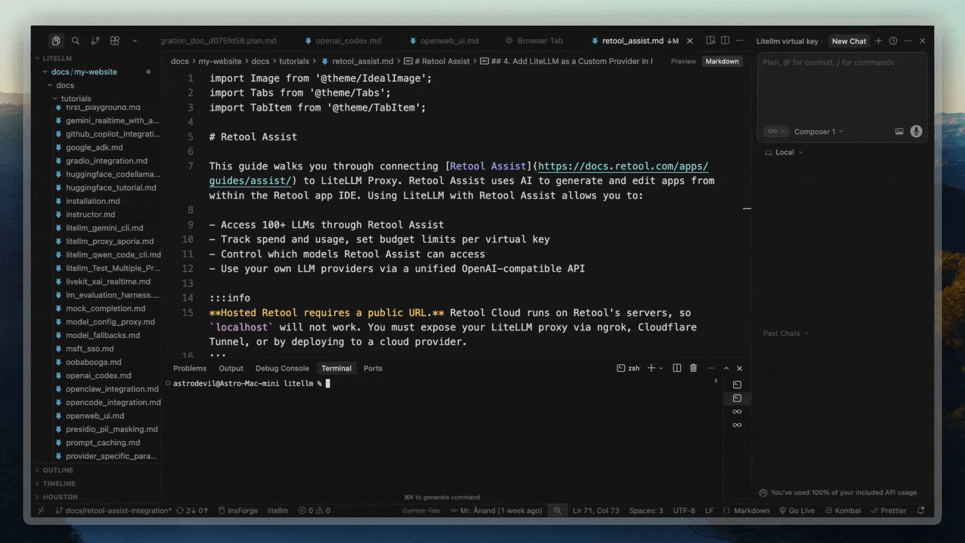 This guide walks you through connecting Retool Assist to LiteLLM Proxy. Retool Assist uses AI to generate and edit apps from within the Retool app IDE. Using LiteLLM with Retool Assist allows you to: